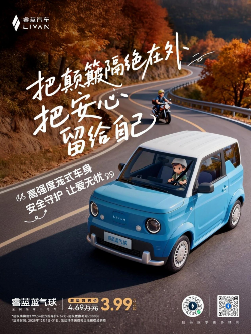 在3.99万元这个曾经只能买到高端电动自行车或简陋老年代步车的价格区间,蓝气球提供了一辆完全合规、安全可靠、且充满设计感的正规A00级纯电汽车。它致力于击穿消费者的心理防线,让“拥有一辆私家车”从需要长期规划的家庭大事,变成了一个可以轻松决策的个人消费选择。首付低至2750元,日供仅需30元的金融方案,更是将拥车门槛降至每日一杯咖啡的消费级,让年轻人、年轻家庭实现“出行自由”变得触手可及。
